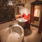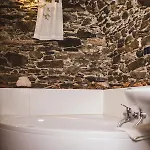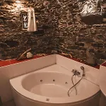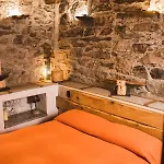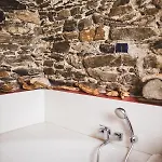 Appartamenti Montemezzo Le Case In Pietra includes a dressing area featuring sound-proofed windows, and modern facilities like a TV set. This accommodation is also complemented by a stone floor and is adorned with a sofa set and a work desk. A private bathroom is equipped with a bidet, a tub, and a separate toilet, as well as a hairdryer and bath sheets.